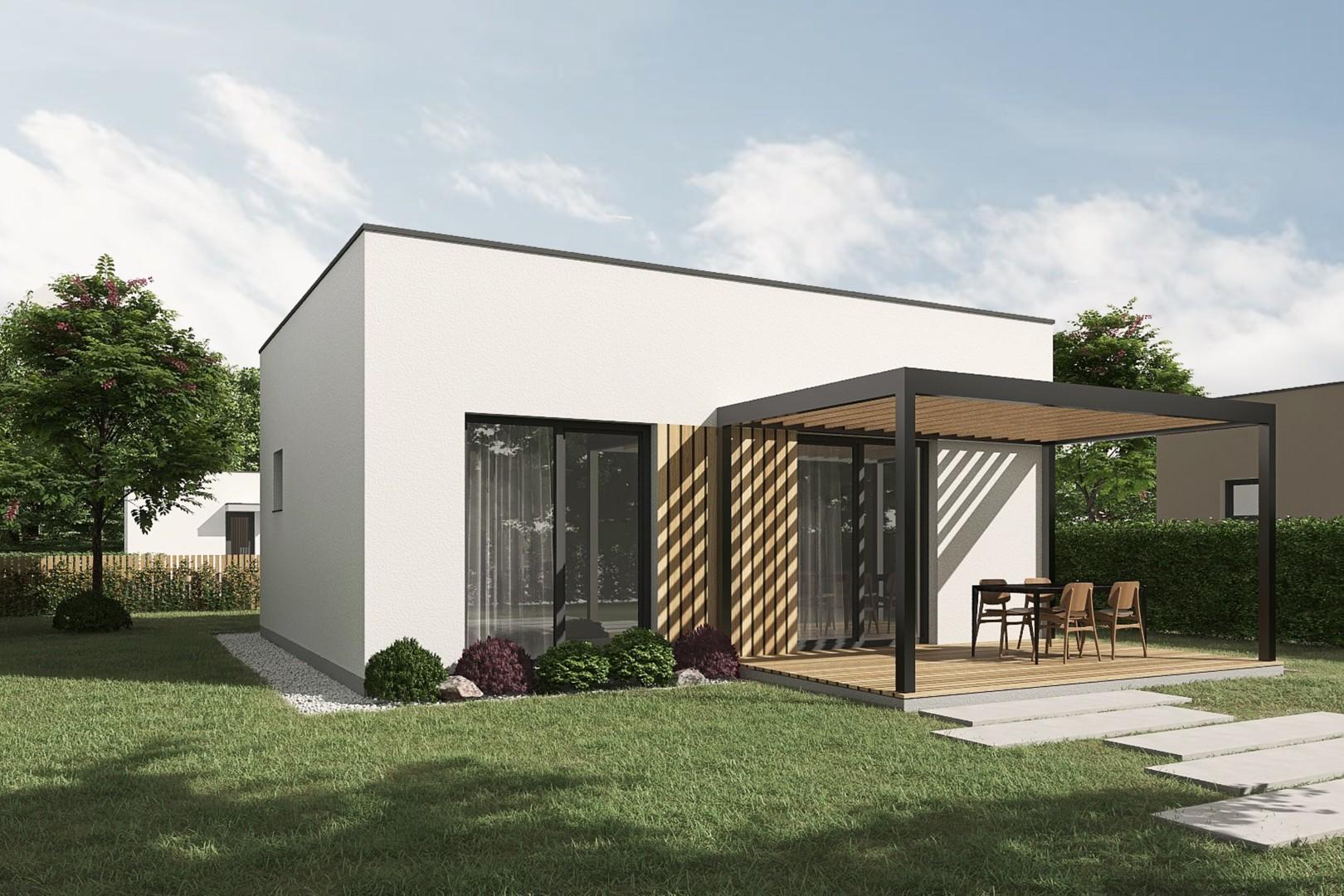 Moderní rodinný nízkoenergetický dům nabízí svým obyvatelům ideální kombinaci elegance a pohodlí. Stavba vyniká svým architektonickým řešením, které lze případně upravit dle přání klienta –jedná se o nepodsklepený, jednopodlažní dům s atikovou střechou a praktickou dispozicí 2+kk.